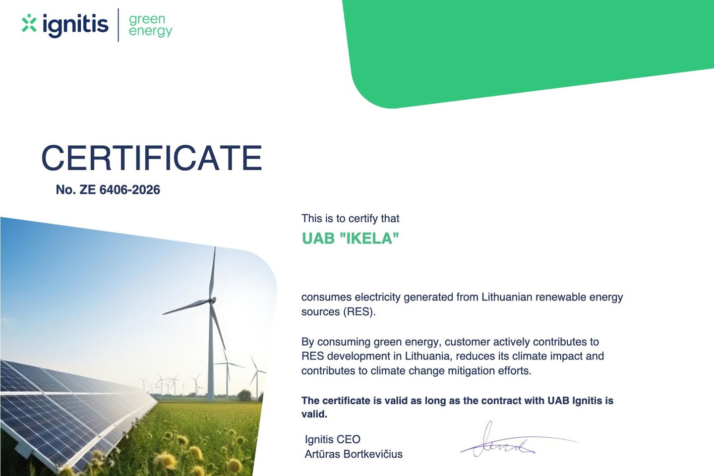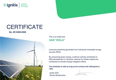 The opportunity to receive support under the joint project “Installation of Private Electric Vehicle Charging Access Points” by submitting an application to the Lithuanian Energy Agency under the announced call “Installation of Private Electric Vehicle Charging Access Points for Legal Entities at Workplaces” encouraged IKELA to plan the installation of electric vehicle charging access points.